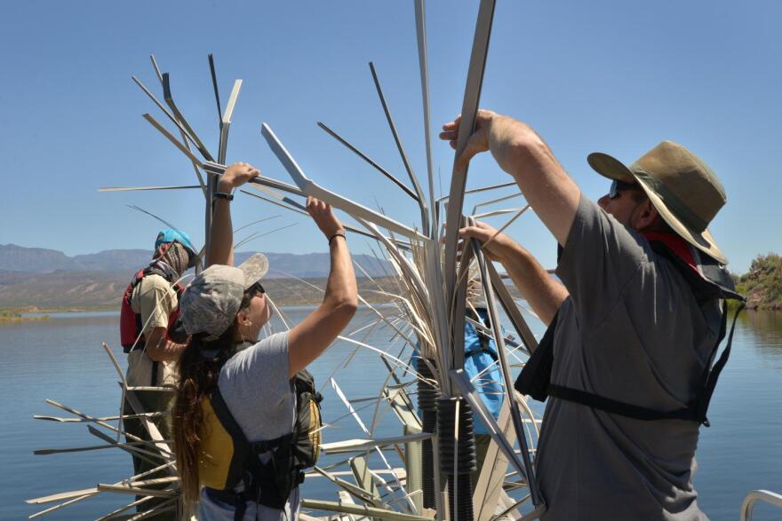 Arizona Game and Fish Department biologists and volunteers have begun placing artificial habitat in Roosevelt Lake, hoping to help bass and crappie recover from vegetation loss and competition with nonnative shad.
