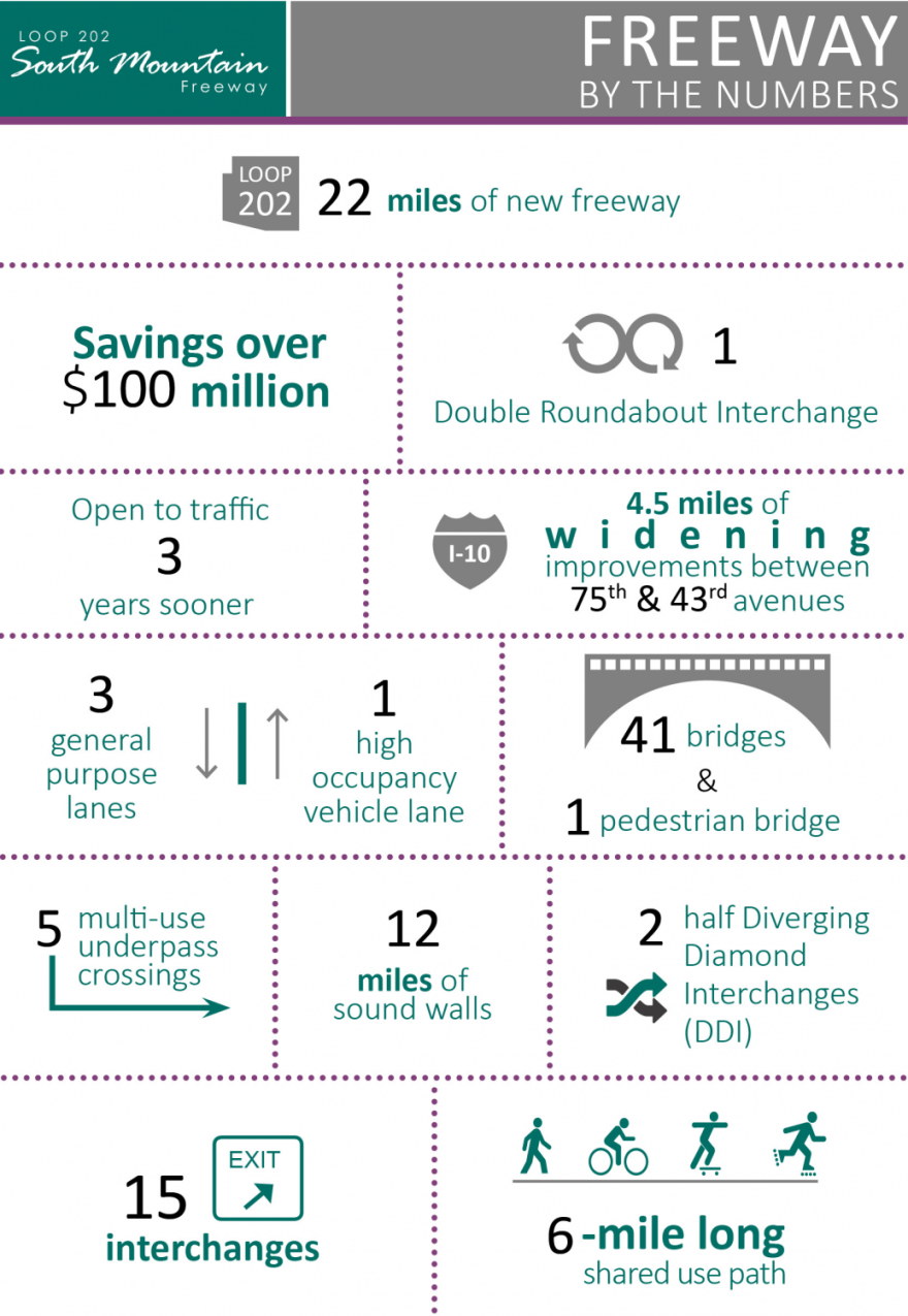 The 22-mile project in Phoenix will connect Interstate 10 near 59th Avenue with I-10 and Loop 202 San Tan Freeway. Drivers will be able to bypass downtown.