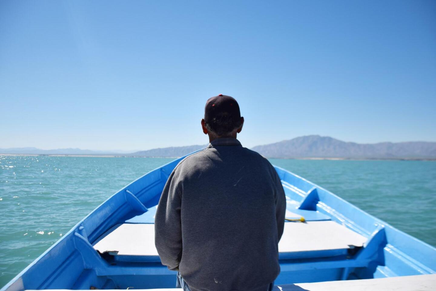 Small pangas, or fishing boats, are out on the water looking for illegal nets that threaten the vaquita marina. (Kendal Blust/KJZZ / editorial | staff)