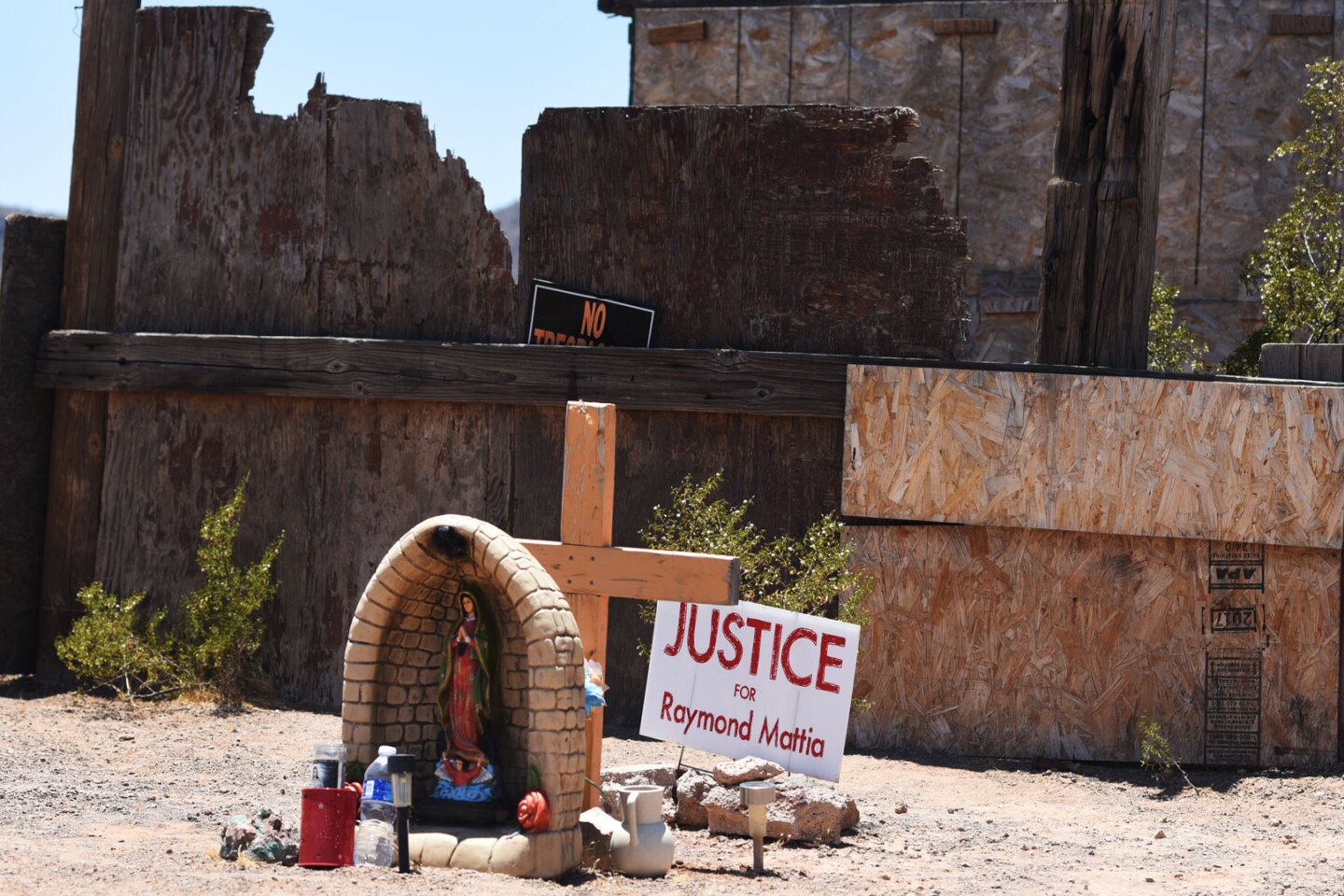 A shrine marks the place with Raymond Mattia was shot and killed by Border Patrol agents in 2023. (Alisa Reznick/KJZZZ)