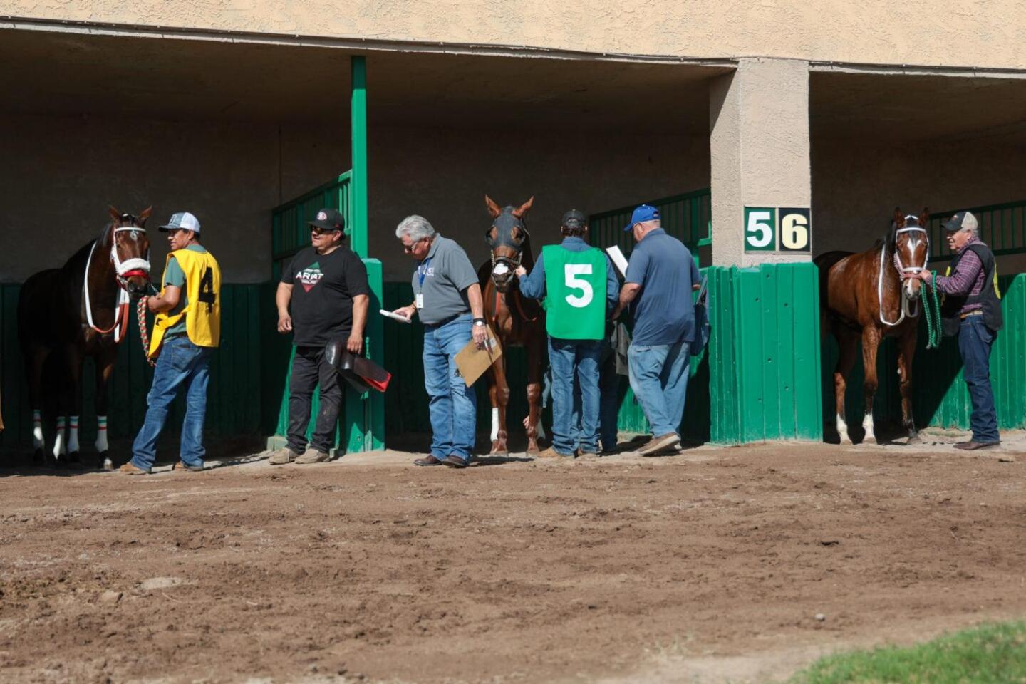 Horses are prepared for the next race on opening day at Turf Paradise in Phoenix on Nov. 10, 2025. (Paul Garcia II / Cronkite News)