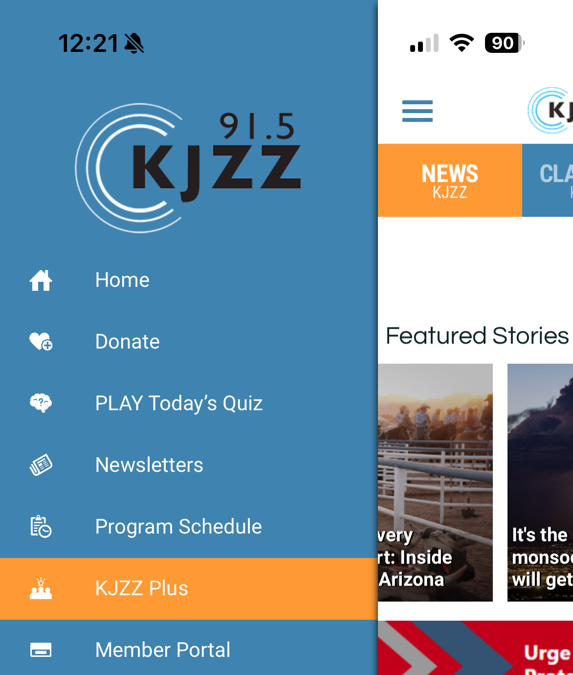 Launch the KJZZ app. Once open, tap the menu icon in the upper left hand corner and select KJZZ Plus.